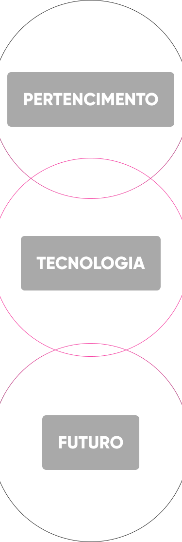 Para criar uma identidade visual marcante e representativa, nos inspiramos no afrofuturismo, um movimento que explora a diáspora africana e o afrocentrismo, fugindo da cultura eurocêntrica. A proposta uniu três pilares principais: futuro, tecnologia e pertencimento, resultando em uma identidade visual que mesclava elementos representativos do povo preto com elementos digitais.